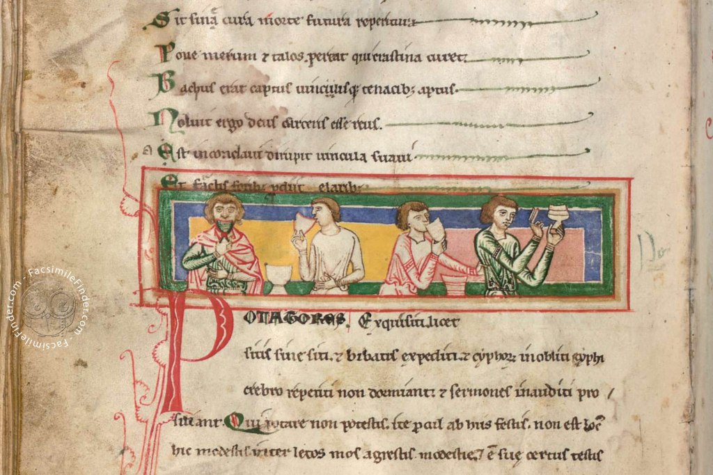 Cântecele de petrecere vorbesc despre inspirația bachică, trăirea clipei prezente și, fără a sugera vreo apropiere, ele seamănă ca mesaj poetic cu unele poeme ale lui Hafez sau cu catrenele lui Omar Khayyamm (de altfel, cruciadele desfășurate în acea perioadă au contribuit la schimbul cultural între spațiul european și cel oriental): “De la pahare se aprinde făclia spiritului;/îmbătată de nectar inima zboară către ceruri./Mi se pare mai dulce vinul din cârciumă/decât acela pe care-l amestecă cu apa paharnicul episcopului”. Alt poem m-a dus cu gândul la poezia “Alcool” a lui Ion Mureșan: “Hei, cât de fericită este viața băutorului,/care își ogoiește furtunile grijilor și ale tristeții!/…când vinul roșiatic se face auriu în pahar.//Pilangiii sug/sticla plină cu vin,/vin amestecat cu mireasmă de miere,/vin aromatizat și tare, cu gust de nectar;/ dau paharele peste cap unul după altul pe jilțul de mărire/în care sărmanul își leapădă jugul sărăciei…//Ies din casă hăulind, cu pasul nesigur,/se prăbușesc pe pietrele caldarâmului./Fârtații goi sunt lipsiți de pelerine;/încovoiați spre pământ își pleacă genunchii./Găsindu-și în țărână așternutul spun: – Rugați-vă/ /iar din spate se aude un glas: – Sculați-vă/rugăciunile voastre au fost ascultate,/căci Bachus a luat aminte la pocăințele voastre”.