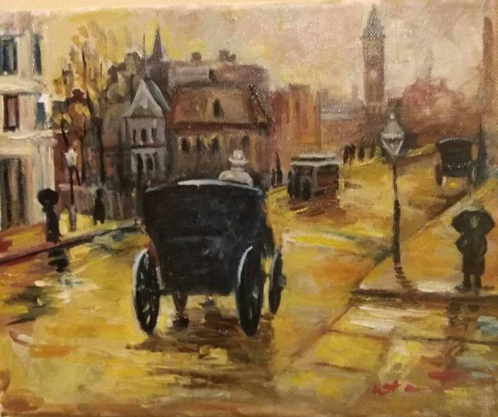 de-a lungul trotuarelor de-asfalt.